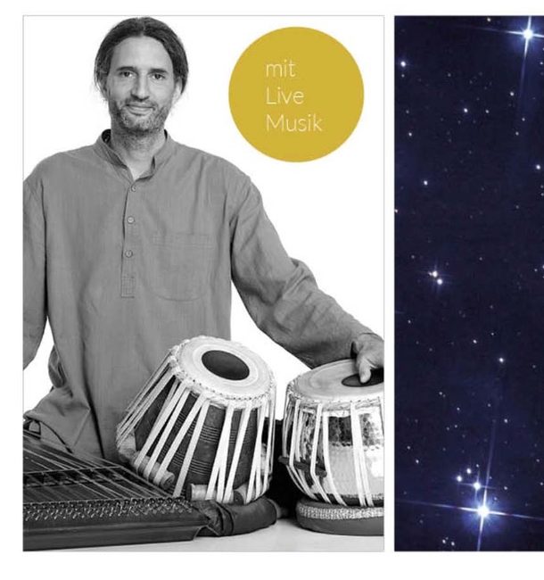 Erhard Dengl (Musiker & Meditationslehrer) begleitet unser Tieftauchen mit Tabla und indischem Hackbrett.